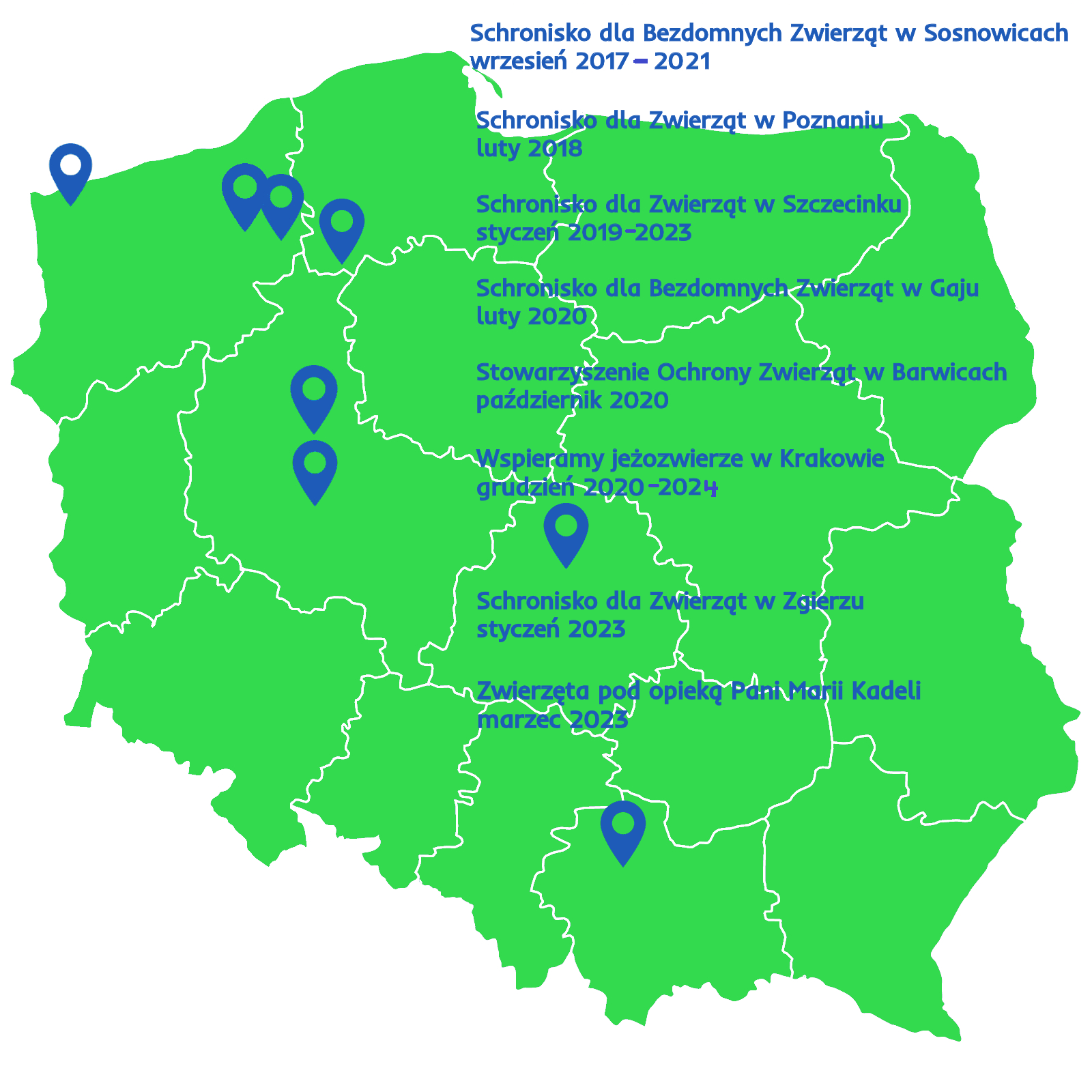 The dogs are in The shelter in Szczecinek. The Foundation finances their haircut. We finished our cooperation with a shelter in March of 2023.